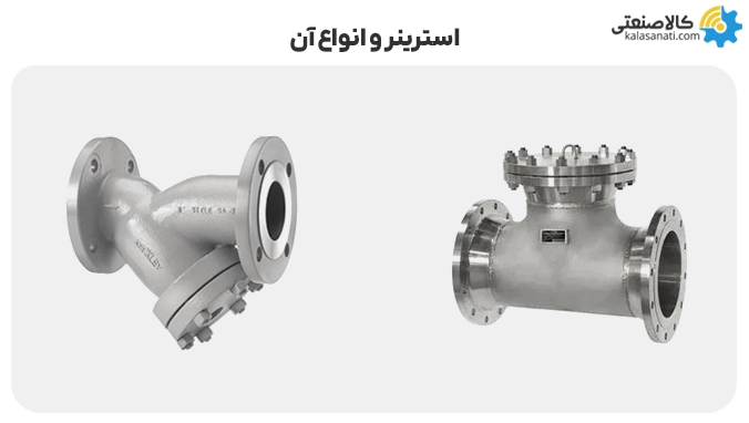 استرینرها دارای انواع مختلفی هستند که دو مدل آن بیشتر رایج است که یکی استرینر نوع Y و دیگری استرینر نوع T است. با این حال انواع دیگری نیز دارد که در ادامه همراه با ویژگی های هر کدام توضیح داده خواهد شد. در مسیر لوله کشی مواقعی که پمپ سانتریفیوژ بکار می رود از استرینر استفاده می شود.