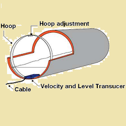راه حل های هوشمند کالا صنعتی  همچنین یک نسخه تخصصی از جریان سنج کانال باز را برای کاربردهایی که لوله دارای هندسه استوانه ای است ، مانند مواردی که در برنامه های جریان فاضلاب دیده می شود ، ارائه می دهد. این محصول ، قادر است سرعتها را در کانالهای کوچک و بدون عملکرد مستقیم یا بدون هیچگونه پروفایل مشخص کند. این دستگاه شامل همان ماژول نمایش استاندارد جریان سنج استاندارد است که با یک آرایه مبدل استوانه ای 4 مسیر از قبل پیکربندی شده است ، همانطور که در تصاویر زیر نشان داده شده است. این آرایه با قابلیت نصب آسان برای کانال های استوانه ای با اندازه 4 "تا 48" (100-1200 میلی متر) در دسترس است و بخش سرعت (v) معادله جریان را به همان شیوه نسخه استاندارد محاسبه می کند. محصول با همان دقت بالا.