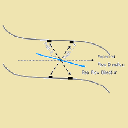 در مجموع (4) جفت مبدل در اعماق از پیش تعیین شده داخل کانال نصب می شود. با بالا آمدن سطح آب، دستگاه از سیگنال برای روشن کردن هر مسیر مبدل جداگانه در غوطه وری استفاده می کند. در حالی که این اتفاق می افتد ، دستگاه دائماً قرائت سرعت را از مسیرهای مبدل فعال می گیرد و از آنها برای محاسبه سرعت متوسط برای منطقه جریان استفاده می کند. مزیت قانع کننده این سیستم این است که قرائتهای بسیار دقیقی برای متغیرهای ناحیه ای و سرعت بدست می آید که منجر به قرائت دقیق و قابل اطمینان سرعت جریان می شود. روش اولتراسونیک زمان ترانزیت پیشرفته که برای تعیین سرعت مورد استفاده قرار می گیرد ، به شما امکان می دهد تا از این جریان سنج در طیف وسیعی از شرایط سیال از کاملاً تمیز تا محتوای جامدات تا 30 درصد استفاده کنید.