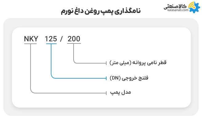 نحوه نامگذاری پمپ روغن داغ نورم مطابق با شکل زیر انجام میشود: