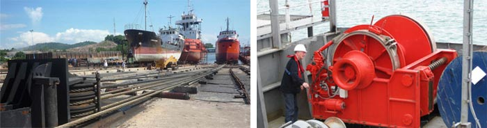 از وینچ ها در اسکله، کشتی، لنج و قایق ها در جهت حمل و نقل و بلند نمودن بار یا وسایل موجود و همچنین به آب انداختن و بالا کشیدن لنگر استفاده می کنند. وینچ ها در زمان صید ماهی و ماهیگیری به کمک صیادان می رود و سبب انجام شدن کار با سختی کمتری می گردد. وینچ هایی که روی کشتی ها و لنج های ماهیگیری مورد استفاده قرار می گیرند قدرت زیاد و طول کابل متفاوتی دارند که این امر موجب می شود صیادان بتوانند راحت تر صید خود را از دریا بالا بکشند. وینچ های دریایی به دلیل مرطوب بودن محیط و همچنین احتمال زیاد تماس با آب دارای بدنه هایی مقاوم در برابر خوردگی می باشند. روی وینچ های دریایی برای راحت تر شدن باز کردن کابل برای به آب انداختن و ترمز قفل شونده ، کلاچ خلاص کن وجود دارد.