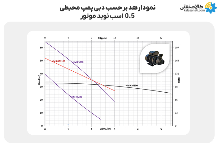نمودار هد برحسب دبی پمپ محیطی 0.5 اسب نوید موتور
