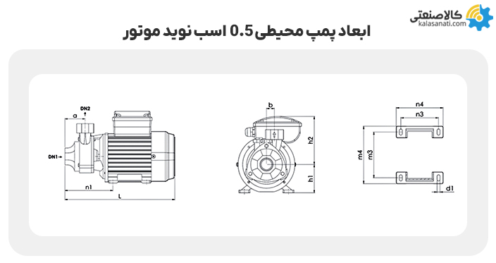 ابعاد پمپ محیطی 0.5 اسب نوید موتور