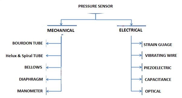- سنسور فشار (مکانیکی): این نوع سنسور فشار را به نیرو تبدیل می کند و سپس این نیرو اندازه گیری می شود.
