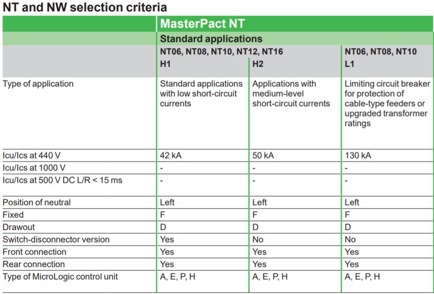 ساخت 3 قطب و 4 قطب واحدهای کنترل الکترونیکی MicroLogic، یکپارچه سازی جریان، ولتاژ، توان و اندازه گیری انرژی که امکان مدیریت انرژی، حفاظت از نشت زمین، و سایر عملکردهای حفاظت پیشرفته یا تجزیه و تحلیل شبکه را فراهم می کند.