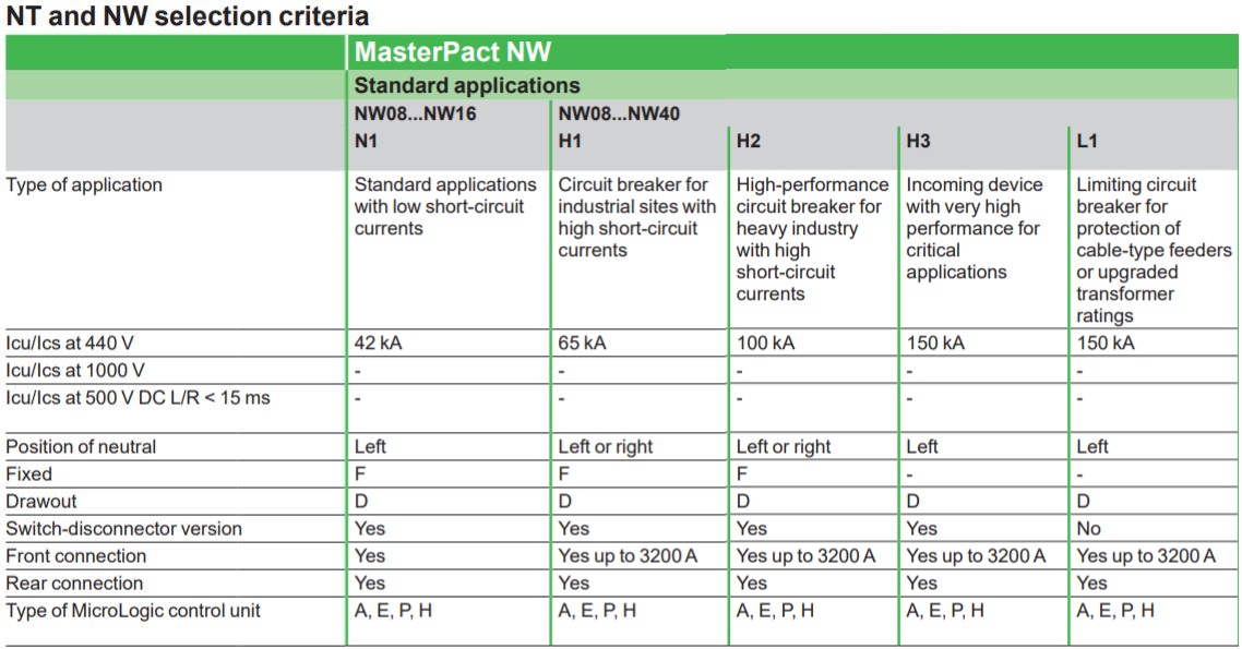 ساخت 3 قطب و 4 قطب واحدهای کنترل الکترونیکی MicroLogic، یکپارچه سازی جریان، ولتاژ، توان و اندازه گیری انرژی که امکان مدیریت انرژی، حفاظت از نشت زمین، و سایر عملکردهای حفاظت پیشرفته یا تجزیه و تحلیل شبکه را فراهم می کند.