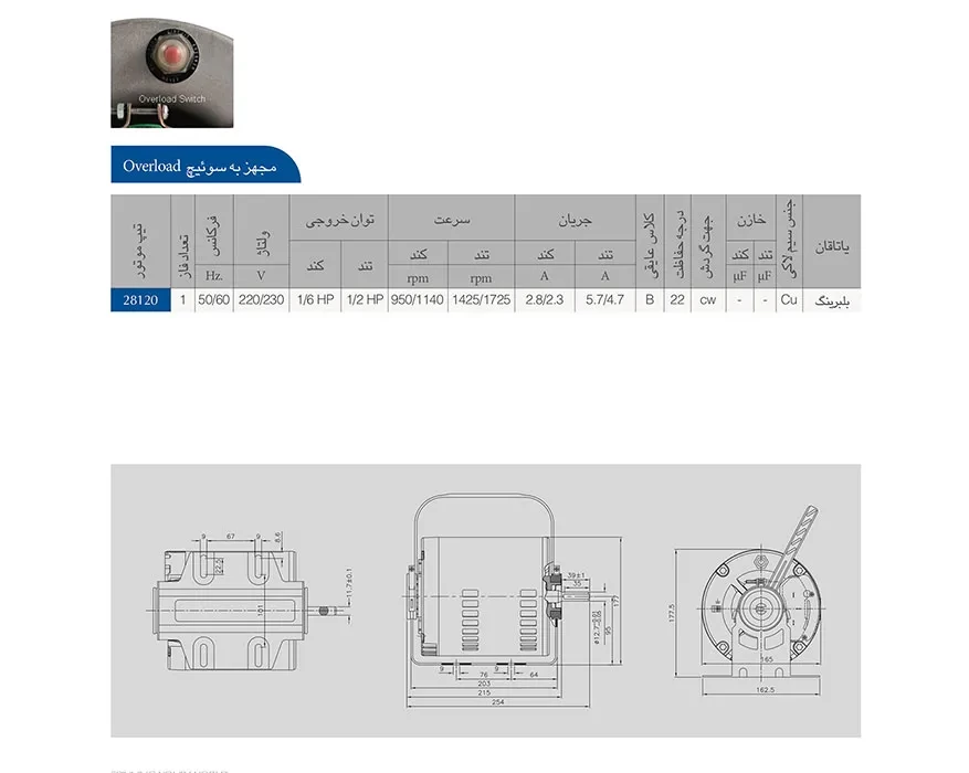 - مجهز به سوئیچ قطع کن (OverLoad) که مانع از سوختن الکتروموتور می شود.