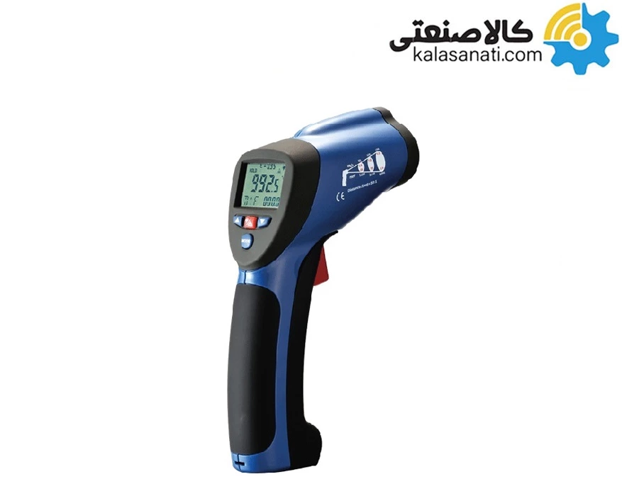 دماسنج لیزری حرفه ای مدل DT-8833 با قابلیت اندازه گیری دما به دو صورت غیر تماسی (لیزری) از منفی 50 درجه تا 800 درجه سانتی گراد و تماسی (همراه با پراب تایپ k) از منفی 50 درجه تا 1370 درجه سانتی گراد با دقت اندازه گیری در حالت غیر تماسی ±1 درجه سانتیگراد و در حالت تماسی ±1.5 درجه سانتیگراد می باشد. جهت اندازه گیری صحیح دما بایستی فاصله دستگاه از محل اندازه گیری بین 1 تا 13 متر باشد. این دستگاه دارای حافظه مینیمم، ماکزیمم، متوسط و میانگین مقادیر بوده و قابلیت تنظیم ضریب تابش Emissivity را دارد. وزن این دستگاه 250 گرم و ابعاد آن 180mm*106mm*48mm است. از دیگر قابلیت های این دستگاه می توان به چراغ پس زمینه نمایشگر و لیزر جهت هدف گیری اشاره کرد. دستگاه DT-8833 قادر به اندازه گیری سطوح اجسام بدون نیاز تماس با آن هاست. همچنین لیزری در دستگاه برای افزایش دقت اندازه گیری شما تعبیه شده است. همچنین دستگاه DT-8833 مجهز به ترموکوپل TYPE K می باشد که محل اتصال این ترموکوپل در قسمت انتهایی دستگاه می باشد. کاربرد این دستگاه در صنعت های غذایی، صنایع ریخته گری پلاستیک، آسفالت، دیزل و همچنین برای بازرسان ایمنی و ماموران آتش نشانی مناسب است.