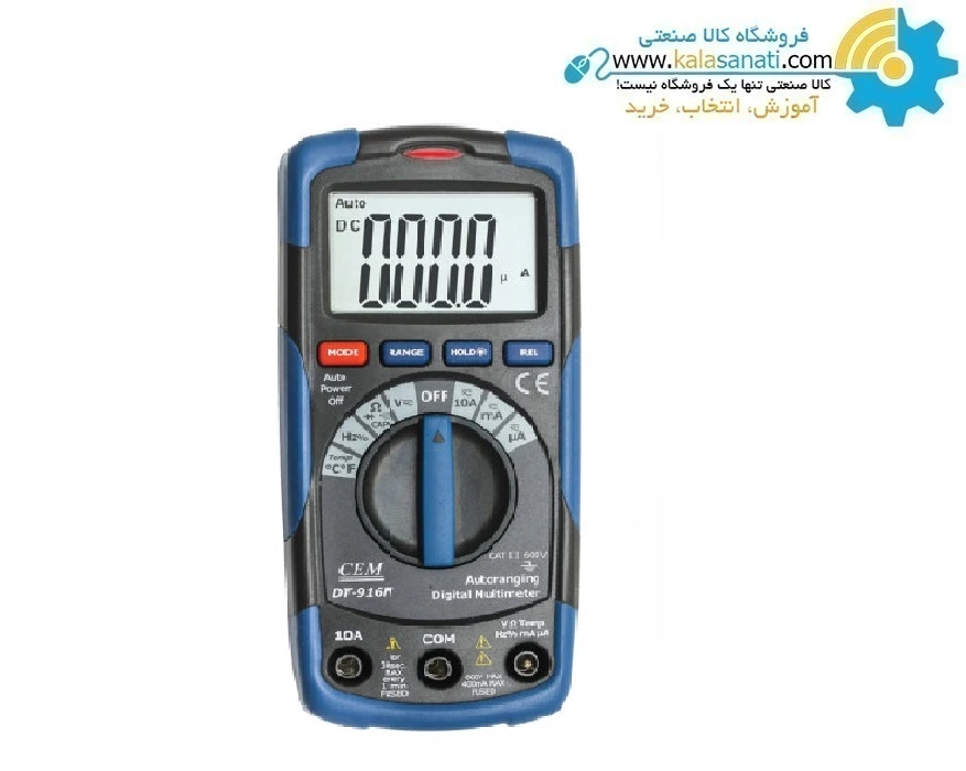 مولتی متر دیجیتال DT-916N،با دقت 1 رقم اعشار در صفحه نمایش LCD، می تواند هر مشکلی در تجهیزات را کنترل کند. قابلیت اندازه گیری جریان از 0 تا 10 آمپر AC / DC و اندازه گیری ولتاژ از 0 تا 600 ولت AC / DC ، اندازه گیری مقاومت الکتریکی از 0 تا 40 مگا اهم، اندازه گیری ظرفیت خازن تا 100 میکرو فاراد، اندازه گیری فرکانس تا 10 مگا هرتز در رنج دمایی 760~0 درجه سانتی گراد، اتصال کوتاه،تست دیود و بیزر از ویژگی های اندازه گیری مولتی متر CEM DT-916N می باشد. در این مدل مولتی متر قابلیت هایی نظیر ردیاب ولتاژ در نظر گرفته شده و می تواند مقادیر peak را ذخیره کند. کالا صنعتی نمایندگی فروش محصولات برند CEM این مولتی متر را با یکسال گارانتی ارائه می کند.