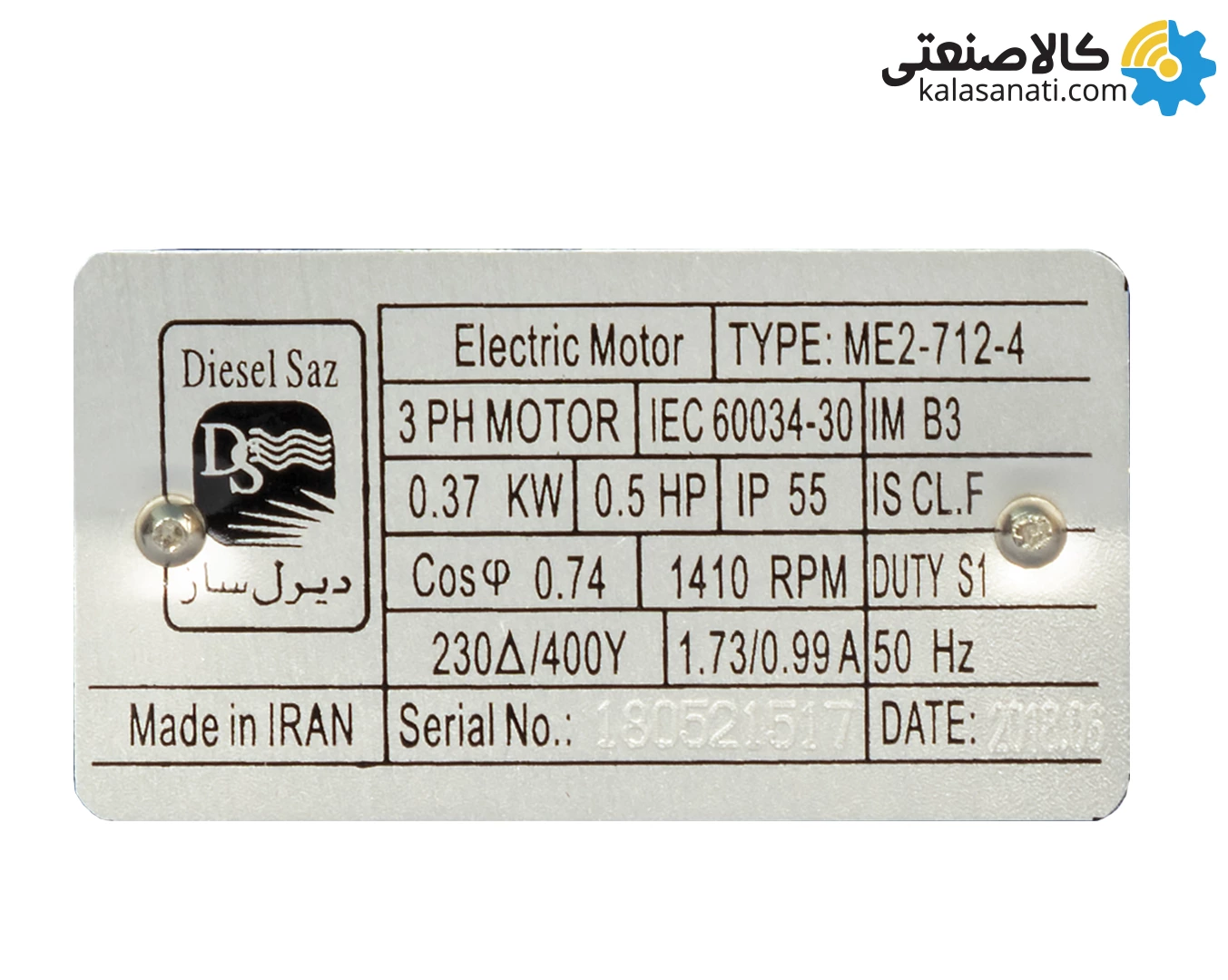 الکتروموتور سه فاز 0.37 کیلووات 0.5 اسب دیزل ساز