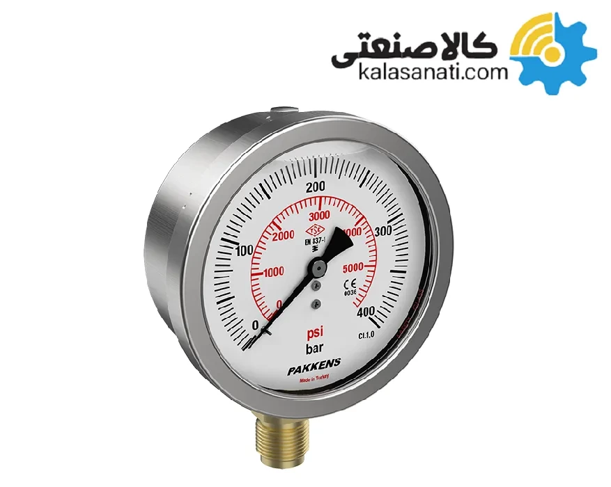 گیج فشار روغنی پکنز صفحه 100 میلی متر رزوه برنجی سری MH