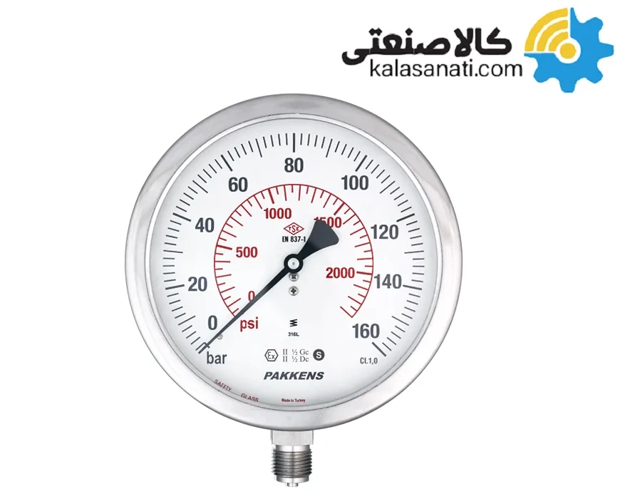گیج فشار خشک پکنز صفحه 160 میلی متر استیل 304 سری MH160SF