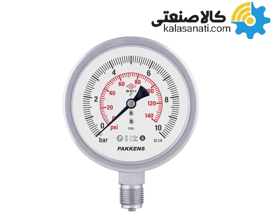 گیج فشار خشک پکنز صفحه 100mm رزوه استیل 304 سری MH100 SF