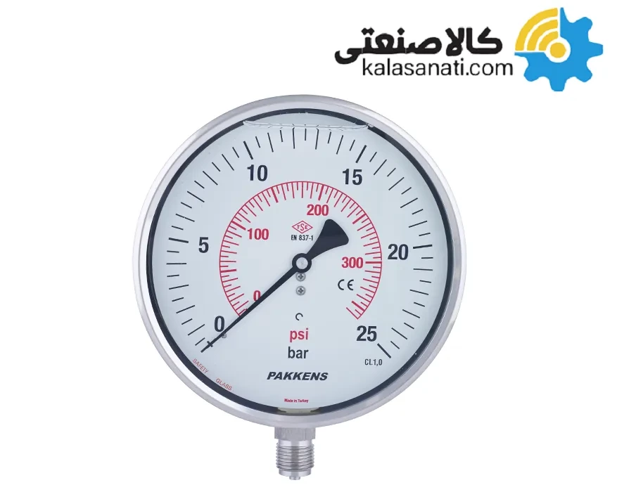 • مشخصات گیج فشار روغنی پکنز صفحه 160 میلی متر رزوه استیل سری MH