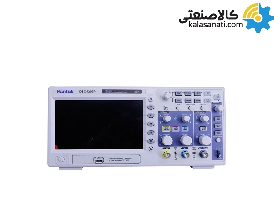 اسیلوسکوپ 200 مگاهرتز 2 کانال هانتک مدل HANTEK DSO-5202P برای نمایش پارامتر های سیگنال ولتاژ، فرکانس سیگنال، دامنه سیگنال، دوره تناوب سیگنال، مقدار موثر سیگنال و مقدار پیک تا پیک موج در بازه 0 تا 200مگاهرتز و سرعت نمونه برداری 1 گیگاسمپل بر ثانیه است .از ویژگی های بارز آن می توان به 31 نوع اندازه گیری اتوماتیک، فانکشن FFT و USB FLASH اشاره نمود.