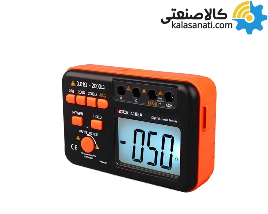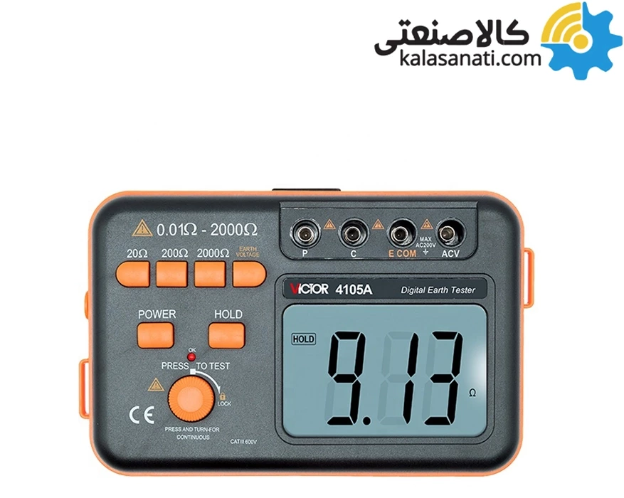 ارت سنج سه سیمه ویکتور مدل VICTOR 4105A برای اندازه گیری میزان مقاومت چاه ارت در ساختمان ها و تجهیزات الکتریکی رعد و برقگیر کاربرد دارد که امروزه جز اقلام ضرروری در مبحث سیستم ارتینگ می باشد، از مشخصات این ارت تستر دیجیتال 3 سیمه ویکتور می توان به اندازه گیری مقامت زمین در رنج های 20، 200 و 200 اهم و کنترل میزان برق مصرفی می باشد. نحوه کارکرد ارت سنج سه سیمه ویکتور به این صورت است که الکترودهای میخی را با فاصله ۵ الی ۱۰ متر از هم در زمین فرو کرده و آنها را با کابل های مربوطه به ترمینال P , C ارت تستر متصل می کنیم و کابل سوم را نیز به الکترود خروجی چاه ارت و ترمینال E COM ارت سنج متصل می کنیم، سپس ولتاژ مد نظر را انتخاب و از طریق الکترود ها به زمین منتقل نموده ،مقاومتی که دستگاه نمایش می دهد، همان مقاومت چاه ارت است. جهت خرید انواع ارت سنج دیجیتال با ارزان ترین قیمت و همچنین مشاوره فنی، با کارشناسان کالاصنعتی تماس حاصل فرمایید، کالاصنعتی نماینده فروش ارت تسر ویکتور،CEM،SEW،UNI-T و تجهیزات اندازه گیری وابزار دقیق با نازل ترین قیمت، امکان خریدی امن و مطمعن با گارانتی معتبر را برای شما فراهم می نماید.