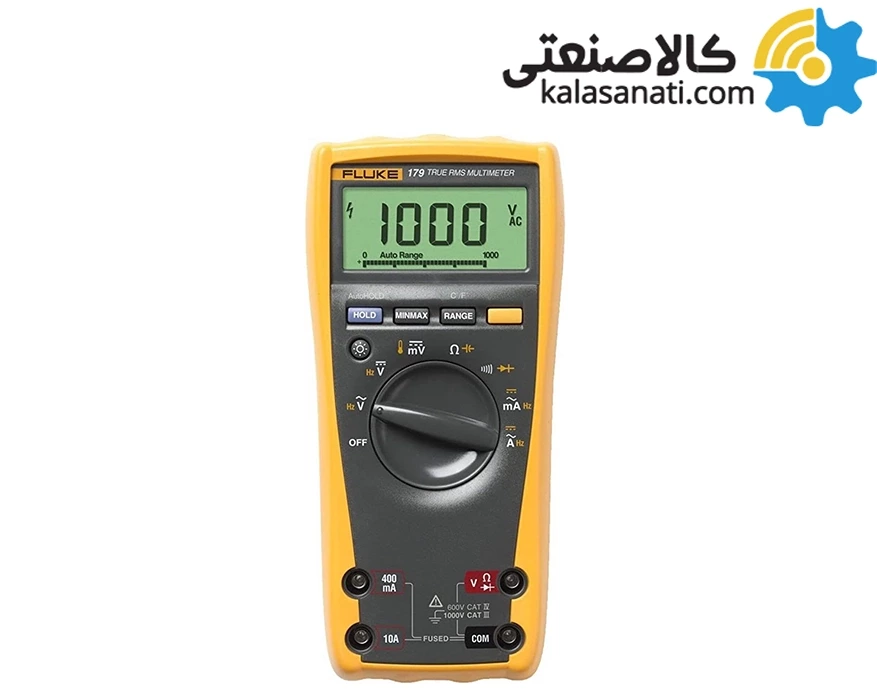 مولتی متر دیجیتال فلوک مدل FLUKE 179 با قابلیت اندازه گیری جریان از 0 تا 10 آمپر AC / DC و اندازه گیری ولتاژ از 0 تا 1000 ولت AC / DC ، اندازه گیری مقاومت الکتریکی از 0 تا 50 مگا اهم، اندازه گیری ظرفیت خازن تا 10.000 میکرو فاراد، اندازه گیری فرکانس تا 100کیلو هرتز در رنج دمایی 400~40- درجه سانتی گراد، اتصال کوتاه، تست دیود و بیزر، جز مولتی متر های ارزان قیمت فلوک آمریکا می باشد. این مولتی متر فلوک دارای قابلیت True RMS است که برای اندازه گیری مقادیر متناوب غیر سینوسی مانند خروجی اینورتر و ... مناسب می باشد.