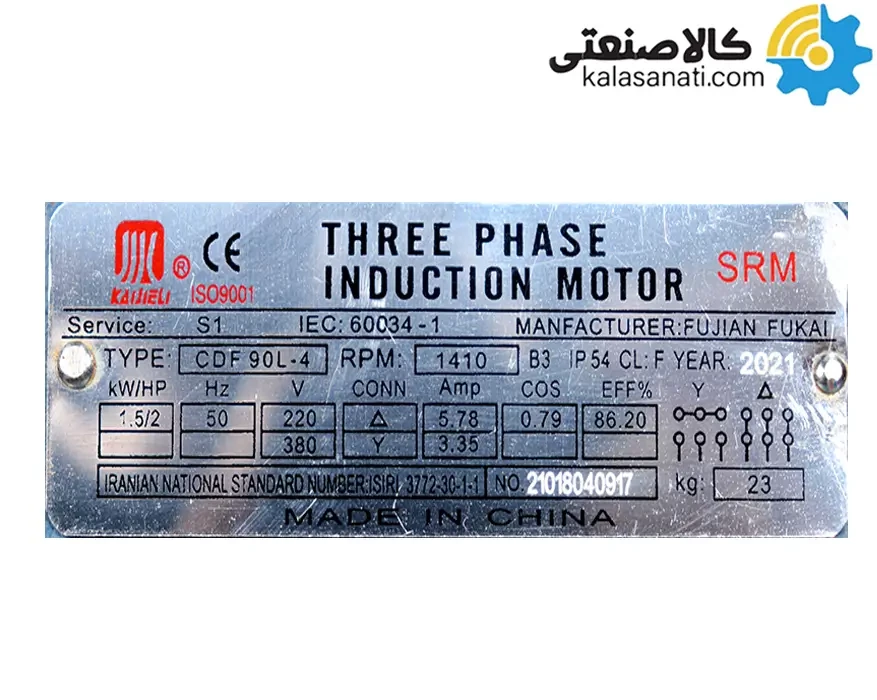 مشخصات الکتروموتور کاجیلی سه فاز 2 اسب 1.5 کیلووات پوسته چدن