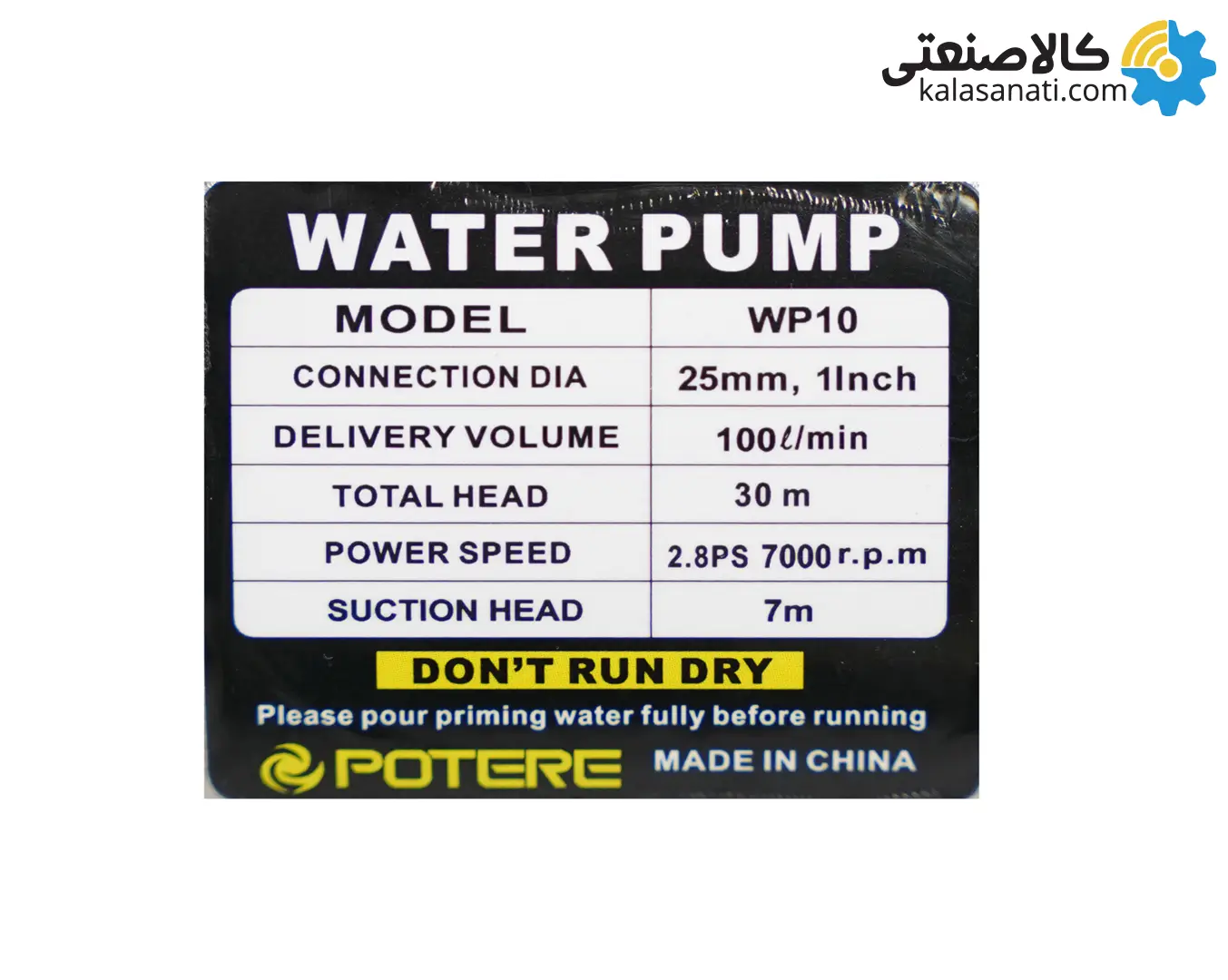 خرید موتور پمپ بنزینی 1 اینچ 30 متری پوتر POTER مدل WP10