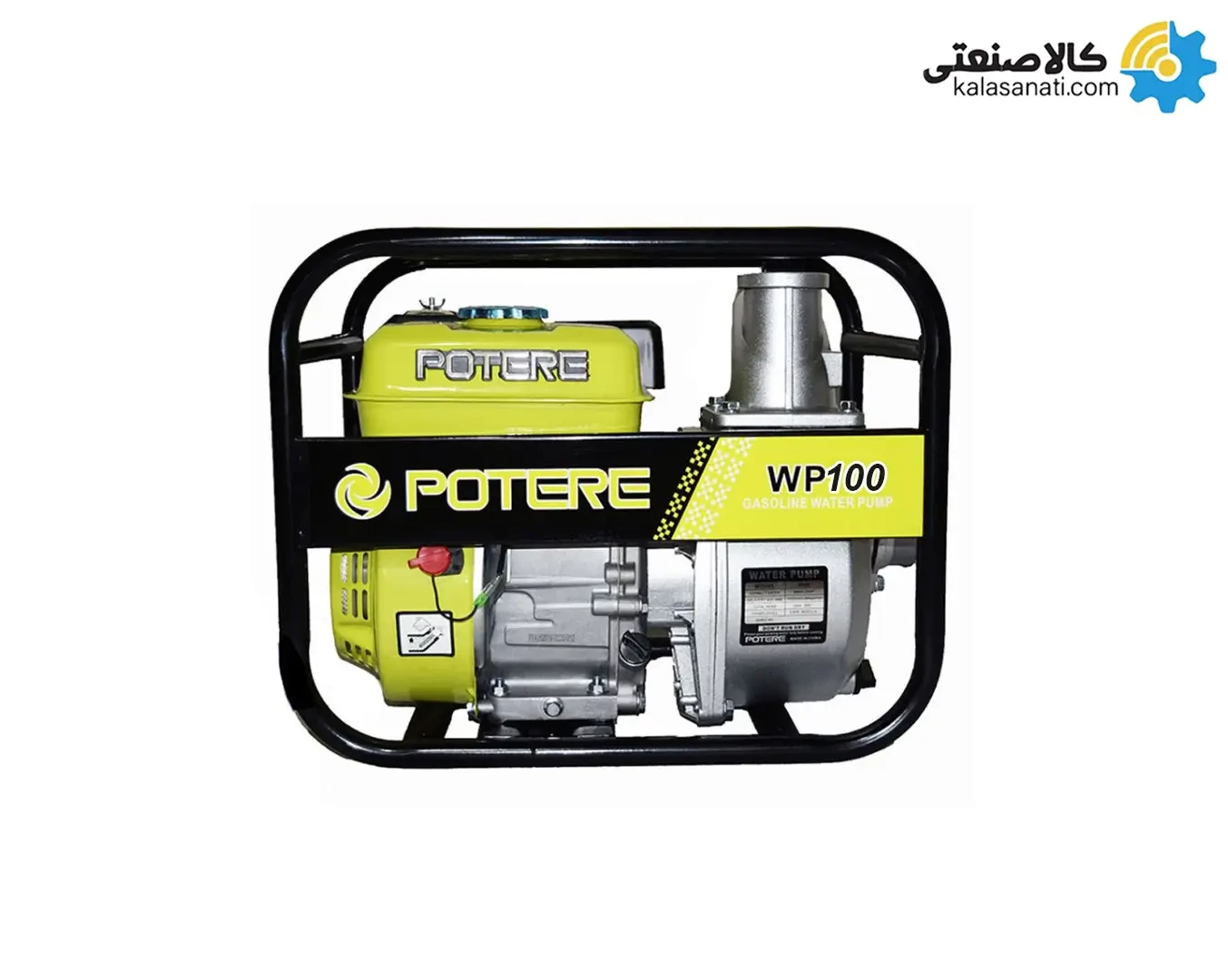 • موتور پمپ بنزینی 4 اینچ پوتر WP100 ساخت کشور چین، تجهیز شده به موتور 389 cc با توان 13 اسب بخار 3000 rpm دارای حداکثر هد 30 متری است. موتور پمپ 4 اینچ بنزینی پوتر POTER دارای گارانتی اولیه و بدو استفاده می‌‌باشد. این موتور پمپ با وزن 43 کیلوگرم قابلیت آبدهی تا حداکثر 1300 لیتر بر دقیقه را داراست. حجم باک سوخت موتور پمپ بنزینی 4 اینچ پوتر WP100 معادل 6.7 لیتر است. لازم به ذکر است که این موتور پمپ دارای موتور 4 زمانه  و دارای سیستم راه اندازی هندلی می‌باشد. از دیگر خصوصیات این موتور پمپ بنزینی برند پوترPOTER میتوان به قابلیت مکش از عمق 7 متری اشاره کرد.