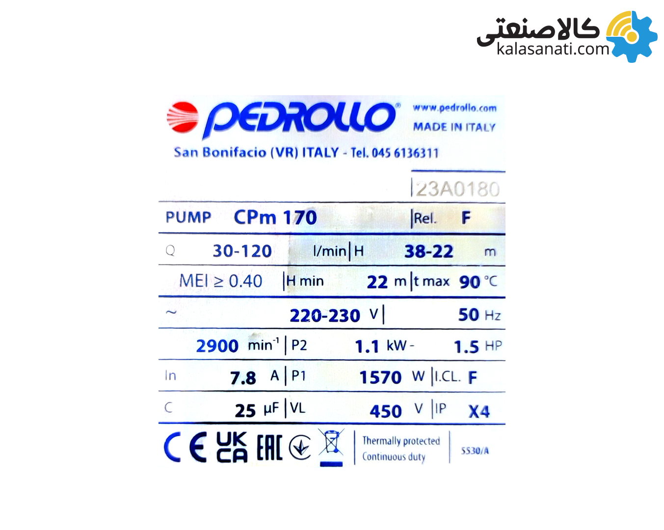 محدودیت های کاربری پمپ 1.5 اسب پدرولو CPm170