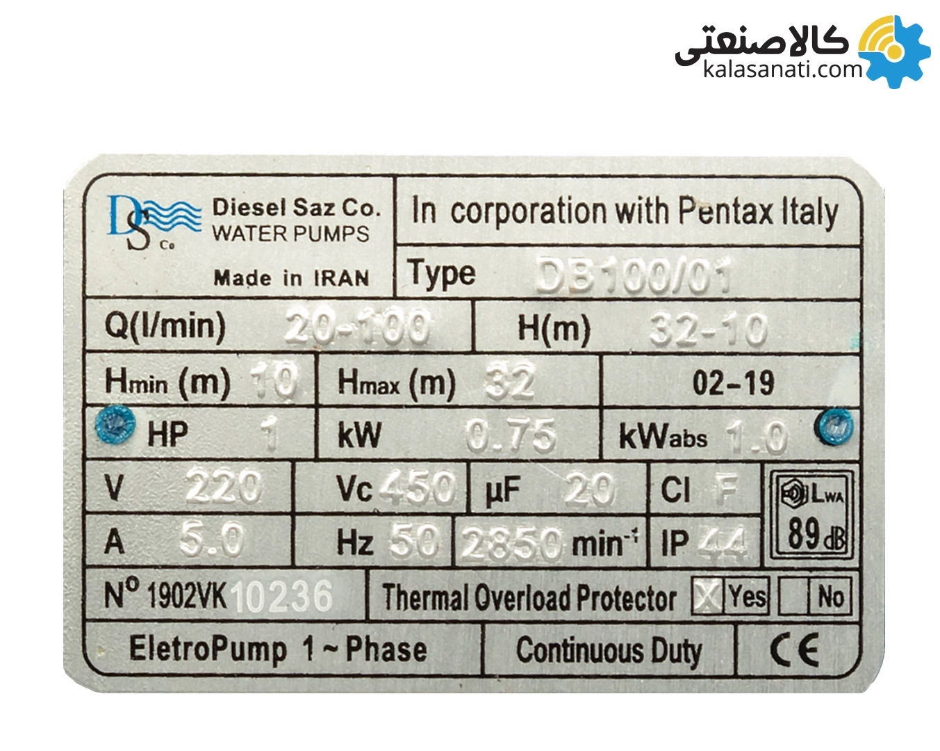 توان نامی: 0.75 کیلووات یا 1 اسب