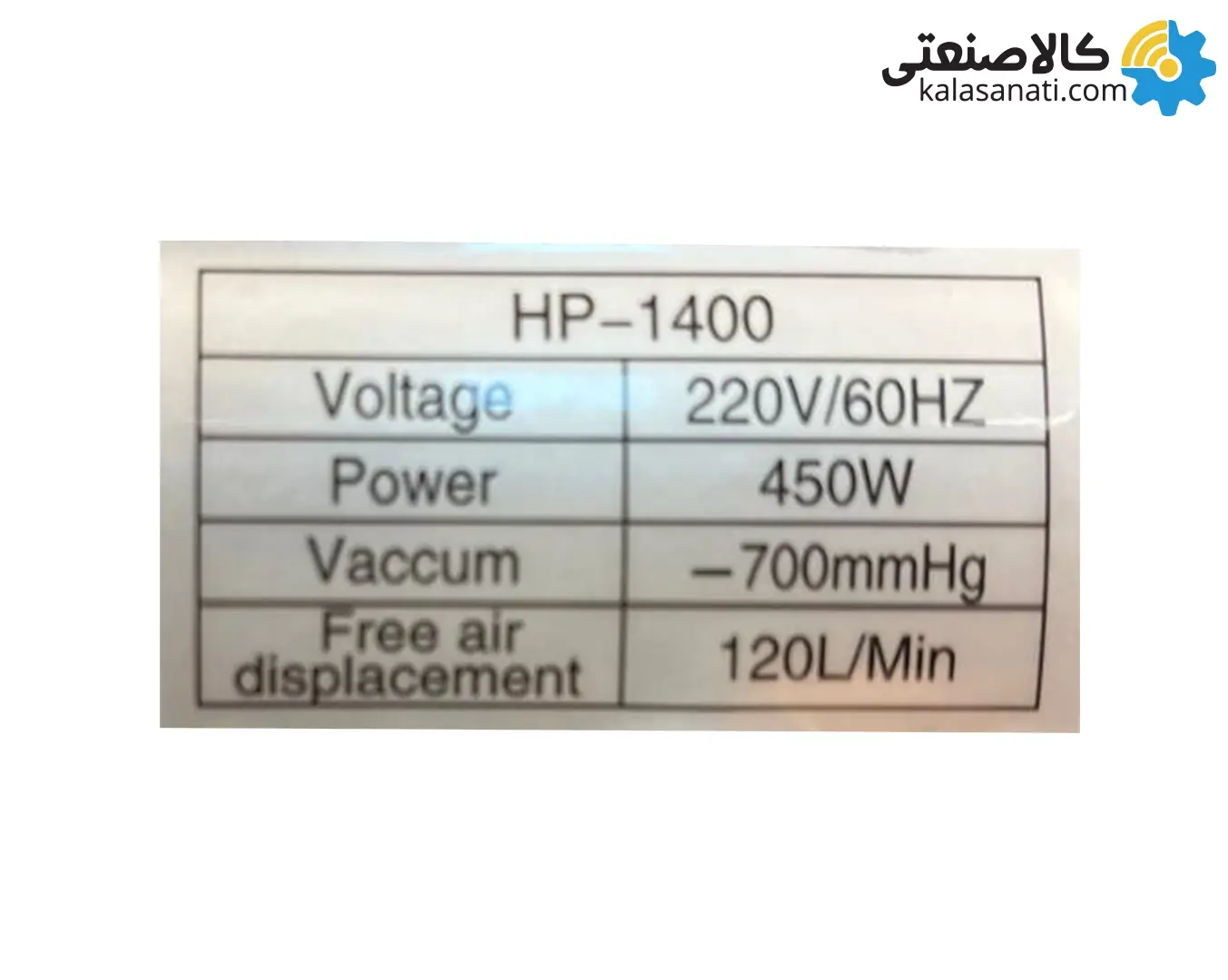 در ادامه به صورت خلاصه مشخصات فنی پمپ وکیوم هامر HP-1400V گزارش شده است:
