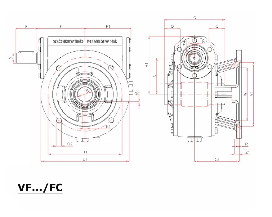 مشخصات گیربکس شاکرین حلزونی VF.FC سایز 62 فلنج دار
