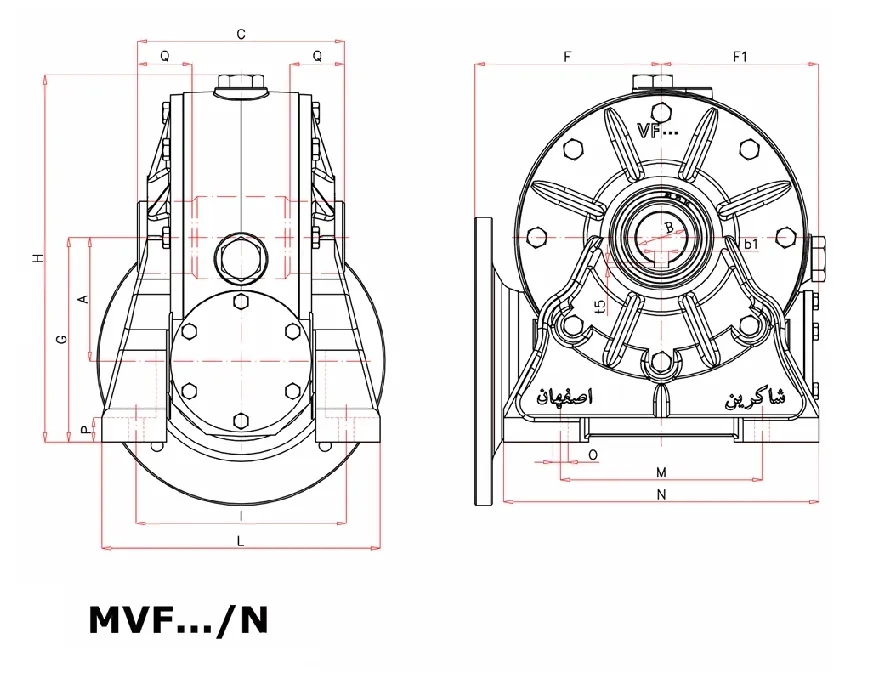 مشخصات گیربکس شاکرین حلزونی MVF نرمال سایز 210 فلنج دار