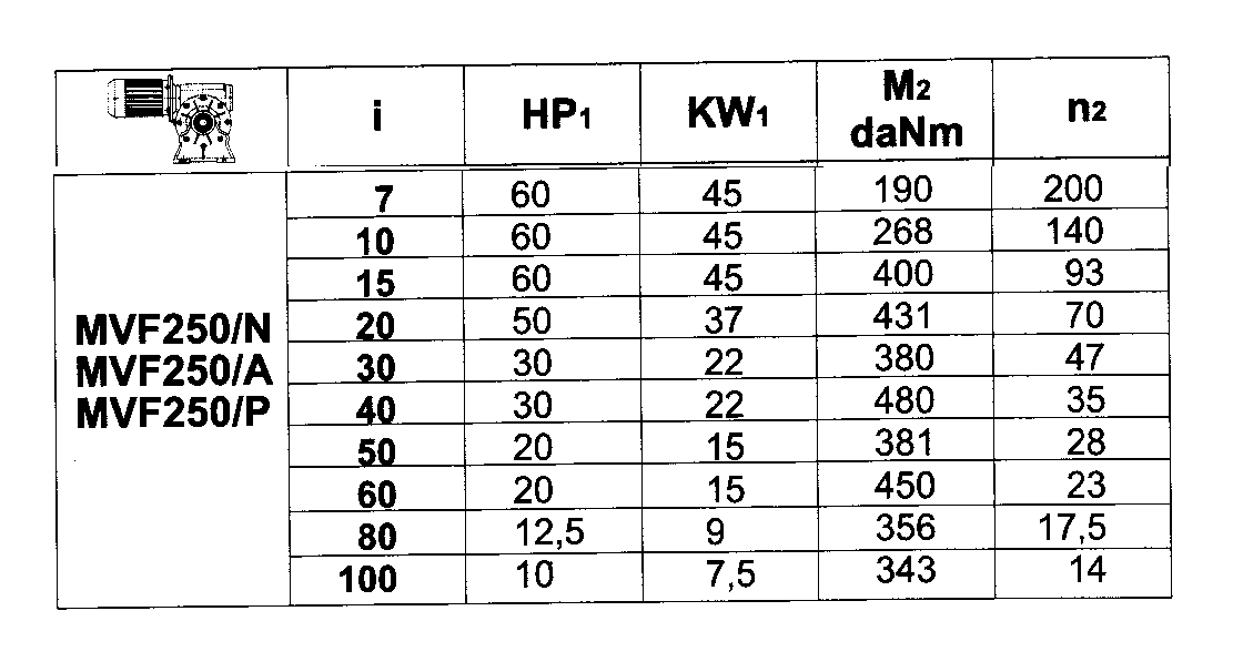 مشخصات گیربکس شاکرین حلزونی MVF/FC سایز 250 فلنج دار