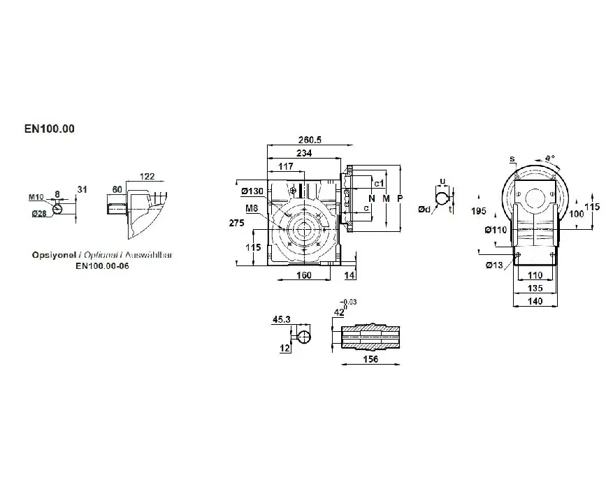 برخی از ویژگی های کلیدی و مشخصات گیربکس حلزونی ایلماز کتابی سایز 100 سری EN عبارتند از: