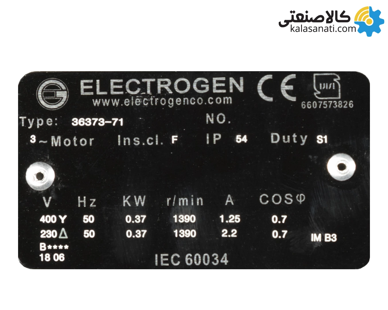 الکتروموتور الکتروژن سه فاز 0.37 کیلووات 0.5 اسب پوسته آلومینیومی