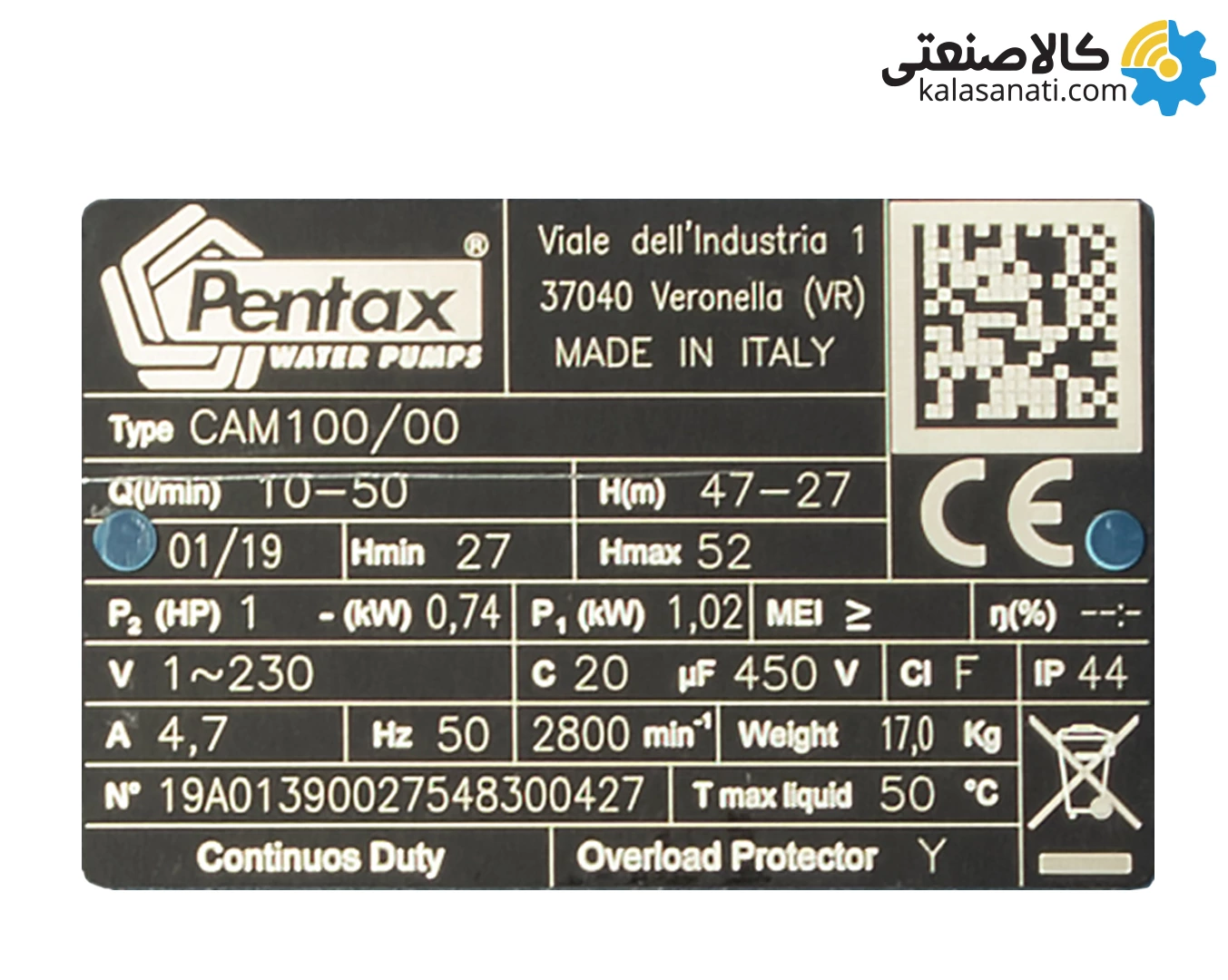 پمپ جتی پنتاکس ایتالیا Pentax یک اسب مدل CAM100