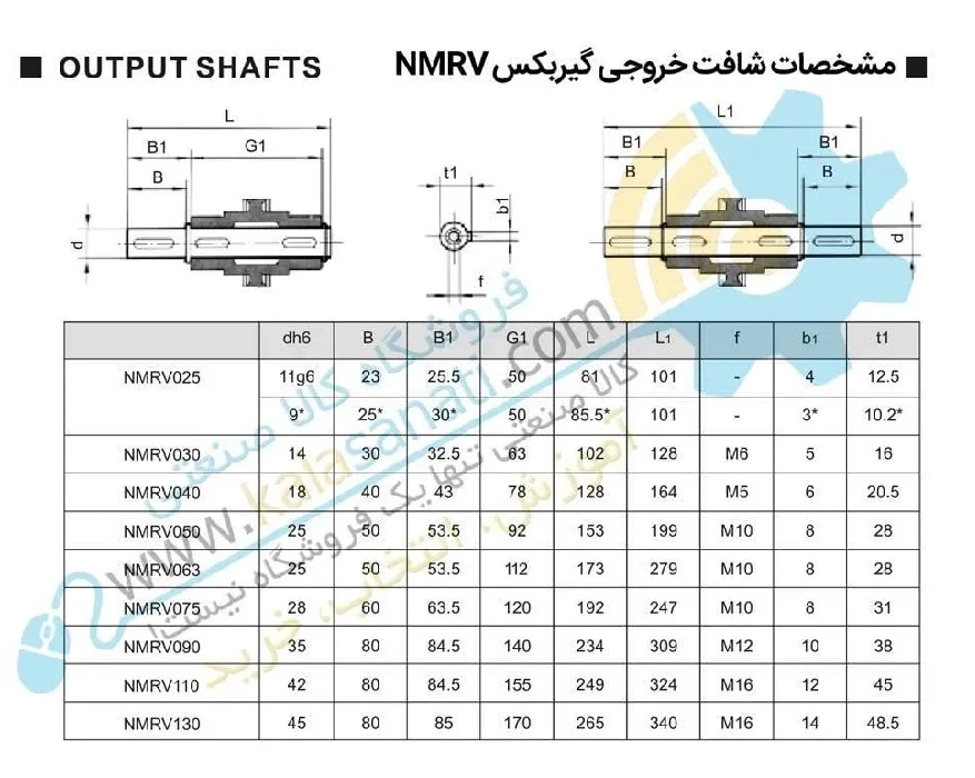 مشخصات شافت خروجی موجود برای گیربکس حلزونی NMRV در جدول زیر بیان شده است.