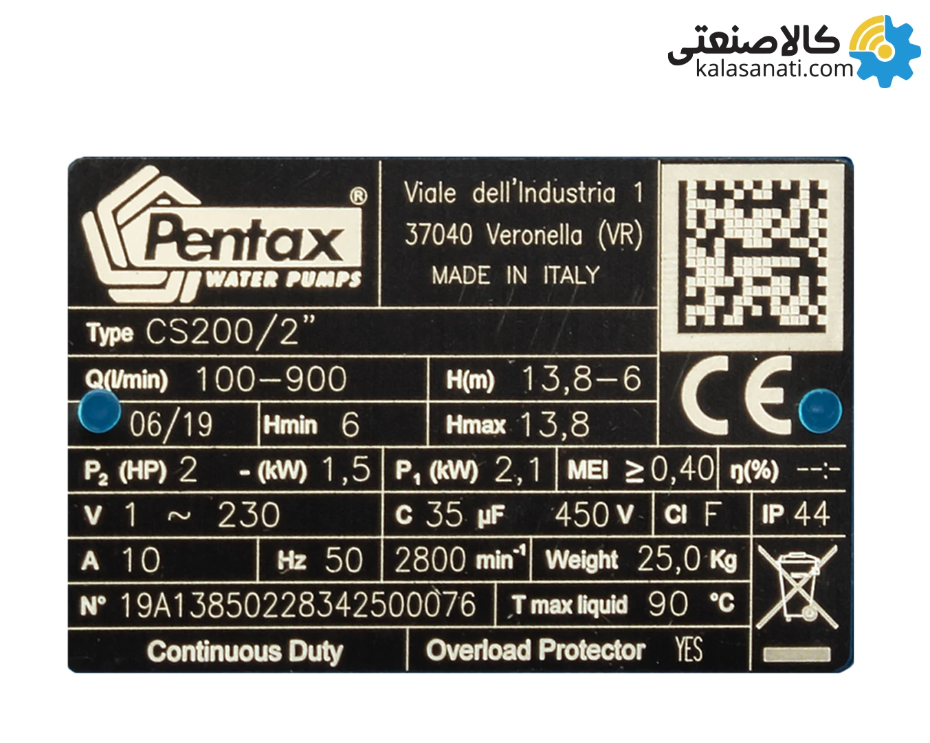 خصوصیات فیزیکی پمپ CS 200/2 پنتاکس