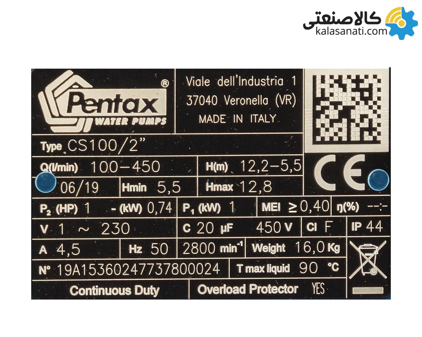 پمپ Pentax پنتاکس دو اینچ دبی بالا CS 100 / 2 تک فاز یک اسب