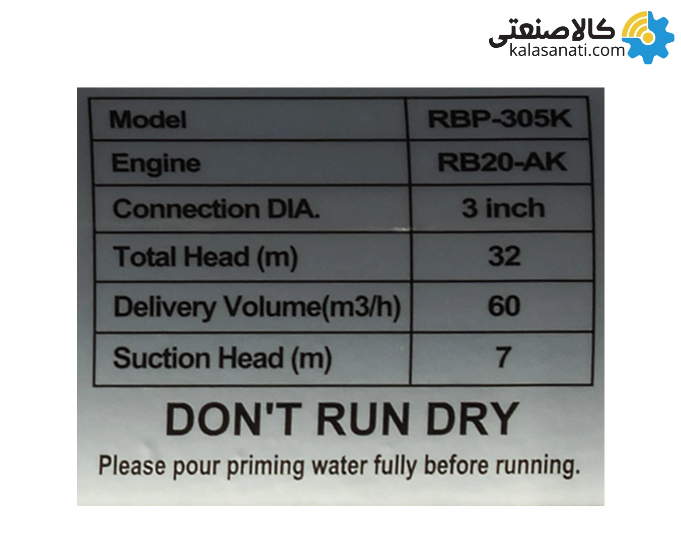 موتور پمپ روبن امروزه جایگاه خوبی بین مصرف کنندگان پیدا کرده است. موتور پمپ نفت و بنزین روبن 3 اینچ RBP 305K سه اینچ است. موتور پمپ روبن در حقیقت با بنزین روشن شده و با نفت کار می کند. در موتور پمپ روبن از موتور سری RB20 استفاده شده است که قدرت مناسبی دارد. ماکزیمم هد این پمپ 32 متر بوده و 60 متر مکعب در ساعت دبی دارد. این پمپ بسیار شبیه به موتور پمپ آب نفت و بنزینی روبین سوبارو ژاپن 3 اینچ سری PTK 310 است که در پنل محصولات مشابه درج شده است. این موتور پمپ توسط کمپانی دیزل ساز وارد ایران شده و در سراسر ایران امکان فروش دارد. برای خرید اینترنتی موتور پمپ روبن سه اینچ با کارشناسان بخش فروش پمپ در تماس باشید.