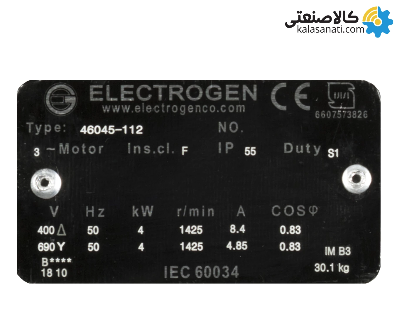 الکتروموتور الکتروژن سه فاز 4 کیلووات 5.5 اسب پوسته آلومینیومی