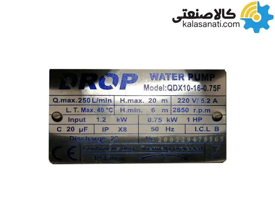 پمپ کف کش 2 اینچ 16 متری دراپ(drop) مدل QDX10-16-0.75