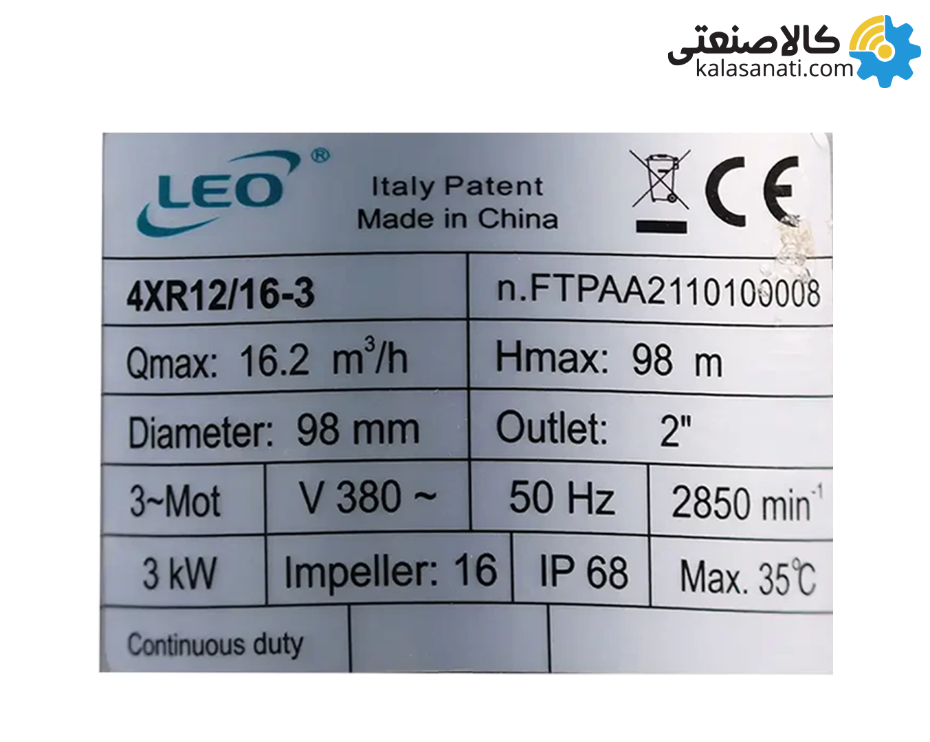 قیمت و مشخصات فنی پمپ شناور استیل 304 لئو مدل 2 اینچ 96 متری سه فاز (4XR12/16-3) با موتور سه کیلووات 4DWT3