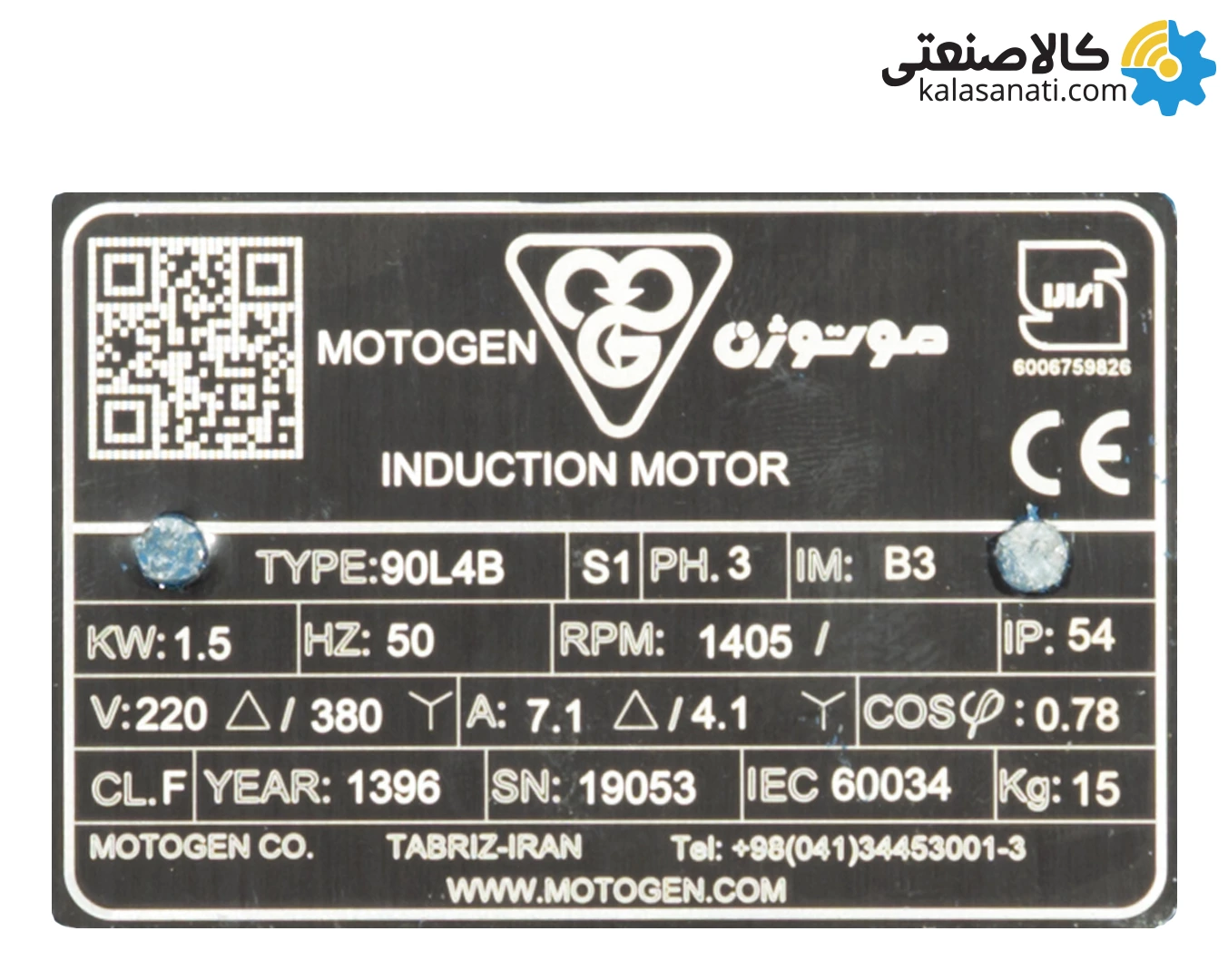 مشخصات الکتروموتور سه فاز موتوژن 2 اسب 1.5 کیلووات پوسته آلومینیوم