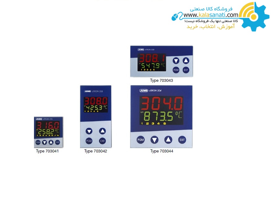 سری کنترلرهای JUMO dTRON 300 از چهار دستگاه قابل برنامه ریزی آزاد در قالب های مختلف DIN ، برای کنترل دما ، فشار و سایر متغیرهای فرآیند تشکیل شده است. صفحه نمایش LCD با کنتراست بالا و چند رنگ برای ارزش واقعی ، نقطه تنظیم و مدیریت کاربر شامل دو بازخوانی 4 قسمتی 7 بخش ، دو بازخوانی 16 قسمتی یک موقعیتی ، نمایش نقطه تنظیم فعال ، شش نشانگر تنظیم سوئیچ و نمایش واحدها ، عملکرد سطح شیب دار و عملکرد دستی همگی از جمله ویژگی های بارز دستگاه کنترل pid آلمانی جومو مدل dTRON304/308/316 کد t70.3. عملکرد آسان از طریق چهار دکمه این دستگاه را می توان به عنوان کنترل کننده دو مرحله ای ، سه نقطه ای ، سه نقطه ای یا کنترل کننده ثابت استفاده کرد.