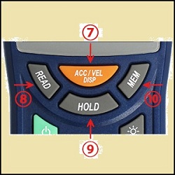 IS کلید ACC/VEL DISP: اندازه گیری شتاب (ACC m/s²) ، سرعت (VEL mm/s) یا جابجایی (DISP mm)