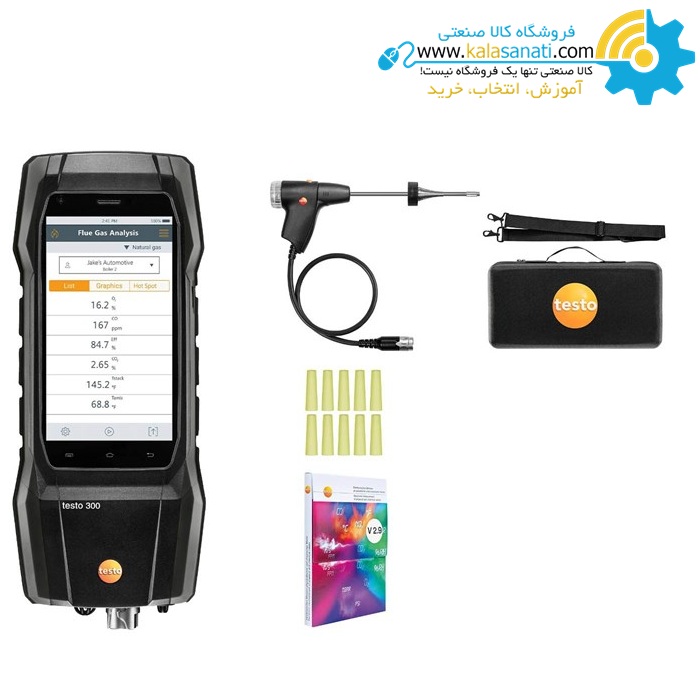 Testo 300 Combustion Analyzer دارای یک صفحه نمایش بزرگ 5 اینچی مقاوم در برابر خراش با عملکرد لمسی هوشمند و فیلم محافظ قابل تعویض است. همه مقادیر اندازه گیری شده را می توان بدون پیمایش مشاهده کرد. صفحه نمایش مقاوم در برابر خط و خش در محفظه ای محکم تعبیه شده است که حتی در شرایط سخت کاری روزمره نیز قابل اعتماد است. منوها برای مهمترین اندازه گیری ها در testo 300 ذخیره شده اند و به طور قابل اعتماد شما را از طریق برنامه مربوطه راهنمایی می کنند. Testo 300 بلافاصله با فشار یک دکمه در حالت آماده به کار آماده می شود. گزارش ها را می توان مستقیماً در محل ، با اتصال WiFi ایجاد و ارسال کرد.