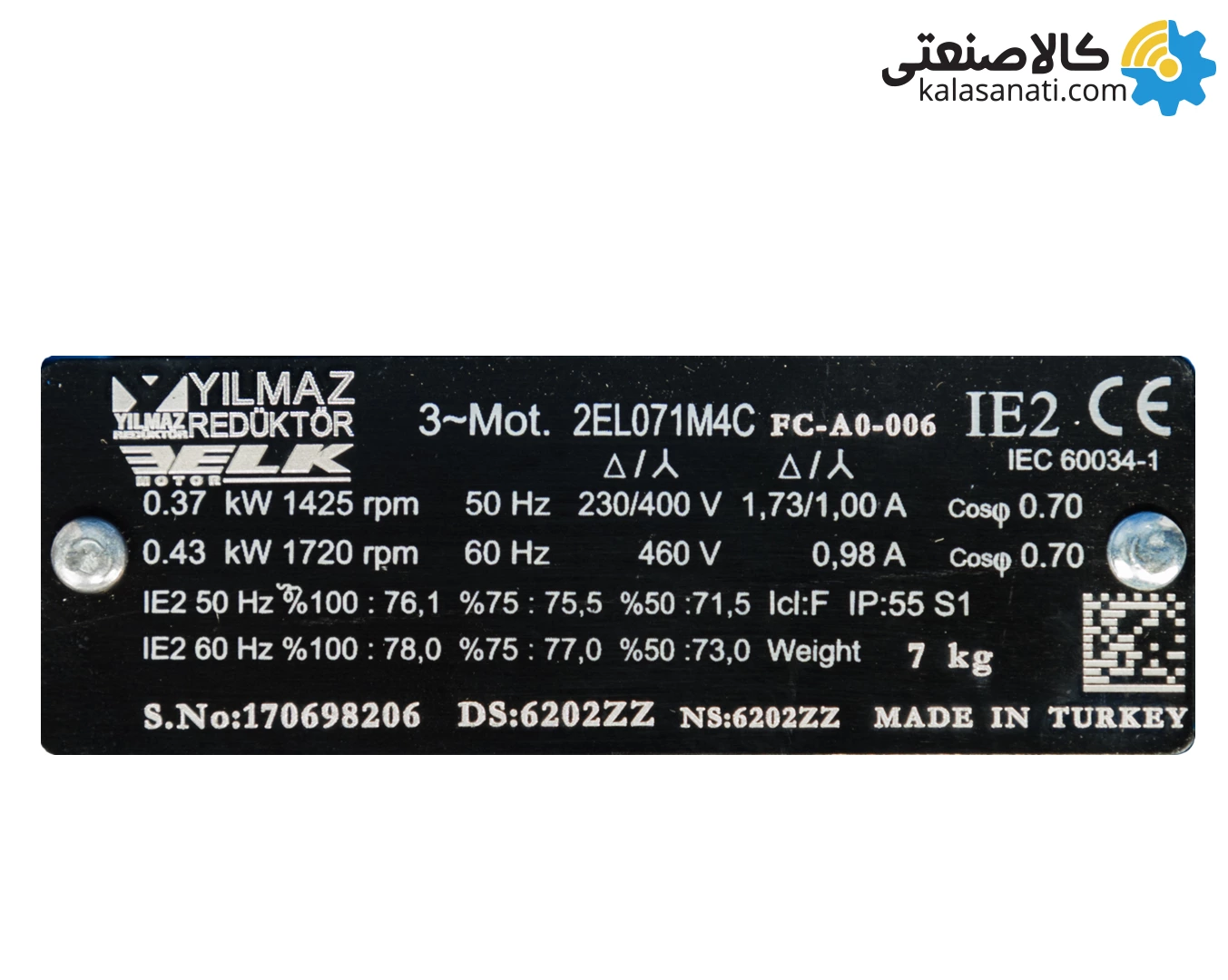 الکتروموتور سه فاز ترک ایلماز 0.37 کیلووات 0.5 اسب