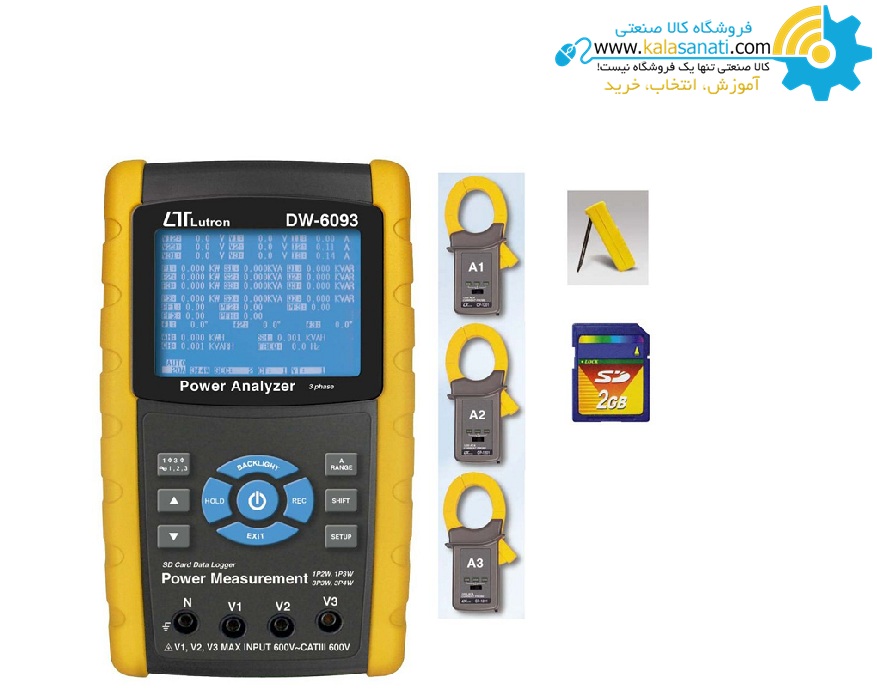 V (phase-to-phase), V (phase-to-ground), A (phase-to-ground), KW / KVA / KVAR / PF (system), KW / KVA / KVAR / PF (phase), KW / KVA / KVAR / PF (system), KWH / KVAH / KVARH / PFH (system), زاویه فاز (Φ)