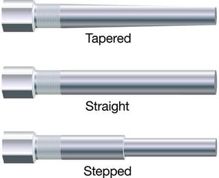 نام گذاری ترموولها از نطر شکل ظاهری shank (ساق) آنها، به سه دسته ی پلهای، مخروطی و مستقیم تقسیم بندی میشود. که هر کدام مزایا و معایب خود را دارند، اما نمونه ی مخروطی یا Tapered آن به مراتب نسبت به ترموول های پله ای و مستقیم کاربردیتر است.