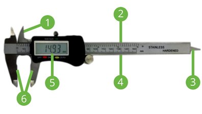 شکل 1 (زیر) را برای نمونه ای از کولیس دیجیتالی از نوع ورنیه ببینید.