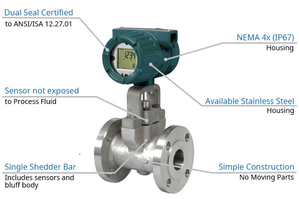 دبی سنج دیجیتال ورتکس، می تواند سرعت جریان مایع، گاز و بخار را اندازه گیری کند. سهولت در نصب و نحوه ی اتصالات به این دلیل است که تنها دو اتصال بالادست و پایین دست وجود دارد. سنسور ، فرکانس را تشخیص می دهد و در سرعت جریان صفر ، فرکانس صفر را خروجی می دهد. بنابراین نیازی به تنظیم صفر نیست.