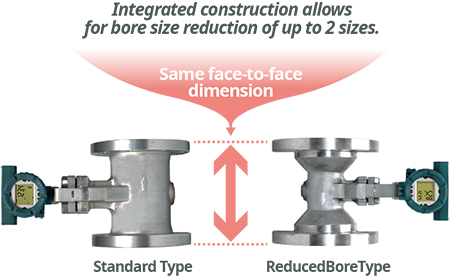 خطی که برای تغییر دو صفحه اوریفیس با توجه به میزان نوسان جریان استفاده می شد با نصب Reduced Bore Type نیازی به تغییر ندارد. برای خطوطی که نیاز به کنترل جریان سالانه یا طولانی مدت دارند، نیازی به توقف خط هنگام ایجاد تغییرات نیست. علاوه بر سیال با دمای بالا و فشار بالا که در اصل فلومتر Vortex در آن خوب است، مقاومت در برابر لرزش و عملکرد خود عیب‌یابی با استفاده از عملکرد SSP منحصر به فرد فلومتر گرداب دیجیتال YEWFLO، کیفیت کنترل جریان با استفاده از عملکردهای مختلف ارتقا می‌یابد.